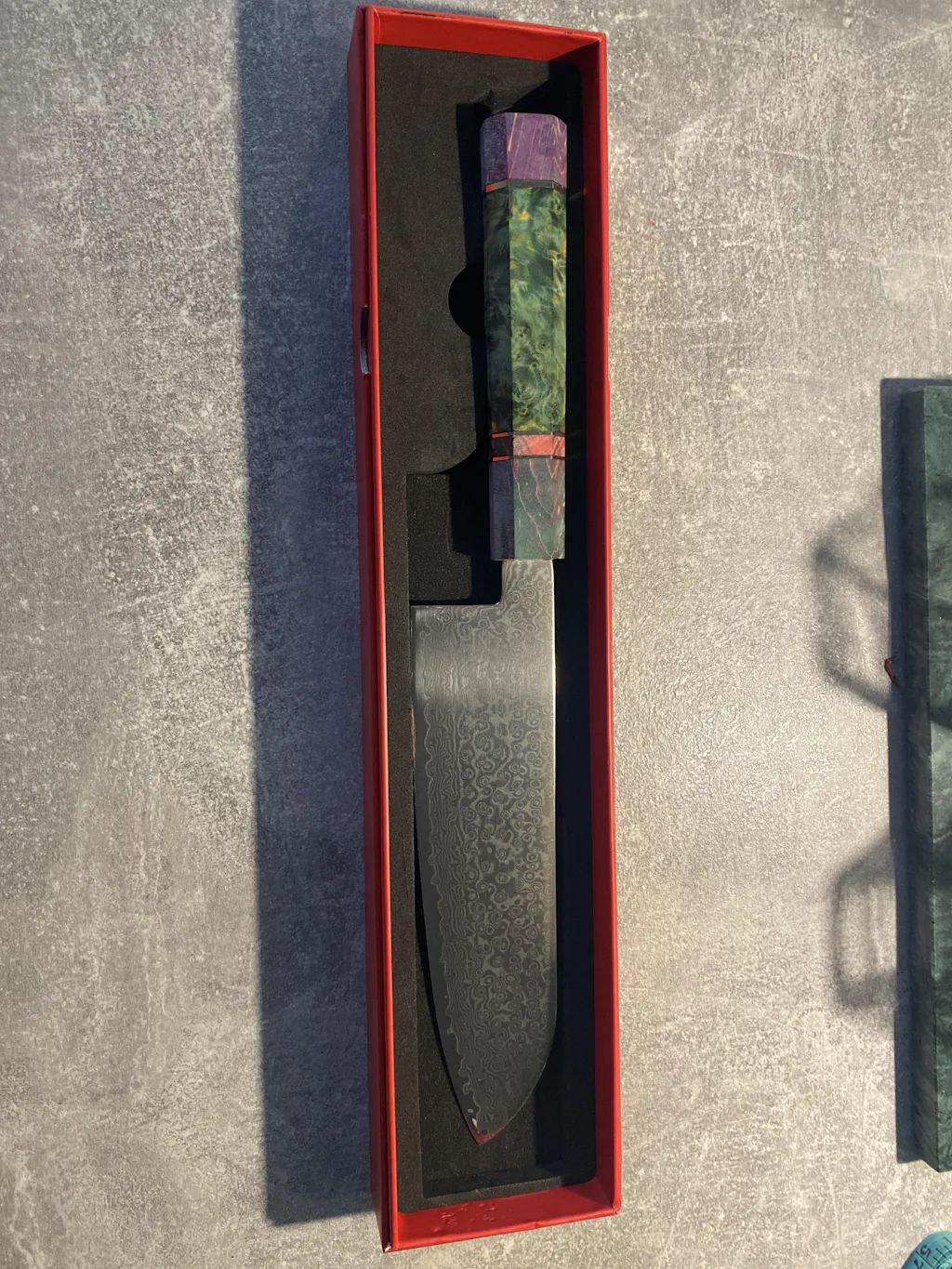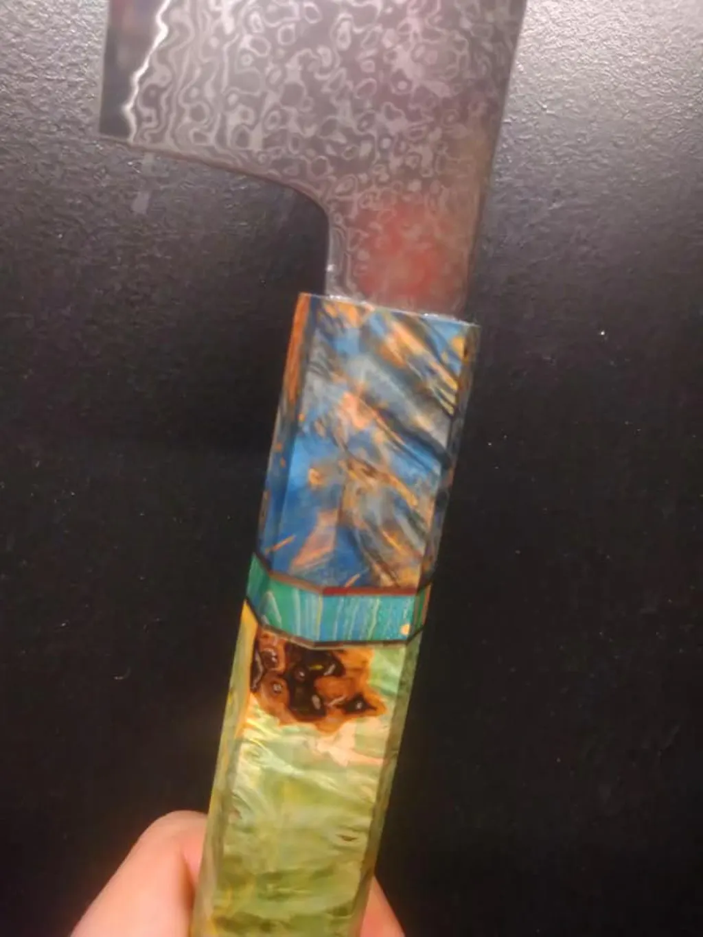 Ichika Damascus Steel Knife with coloured Octagonal Handle