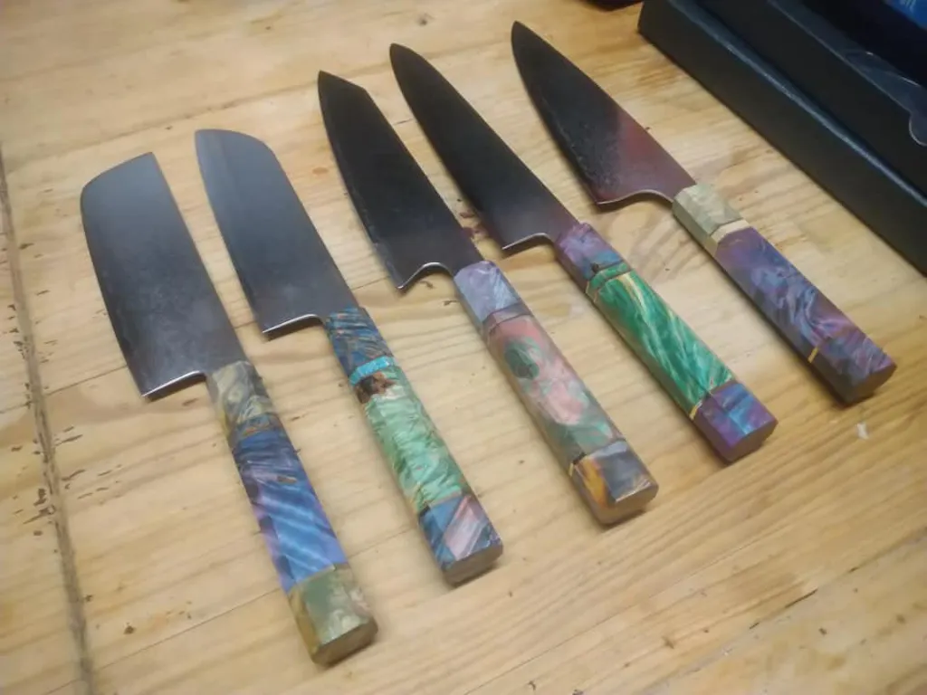 - Ergonomic, octagonal handle with unique colours for comfort and style. Each knife has a unique handle and the colour will vary from knife to knife. Some may have multiple colours and others may have less (colours cannot be chosen).